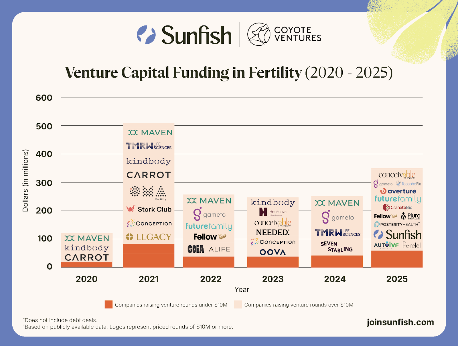 We expect a small number of scaled platforms will continue to raise large rounds. At the same time, early-stage innovation will remain active, because fertility continues to have many unsolved problems.